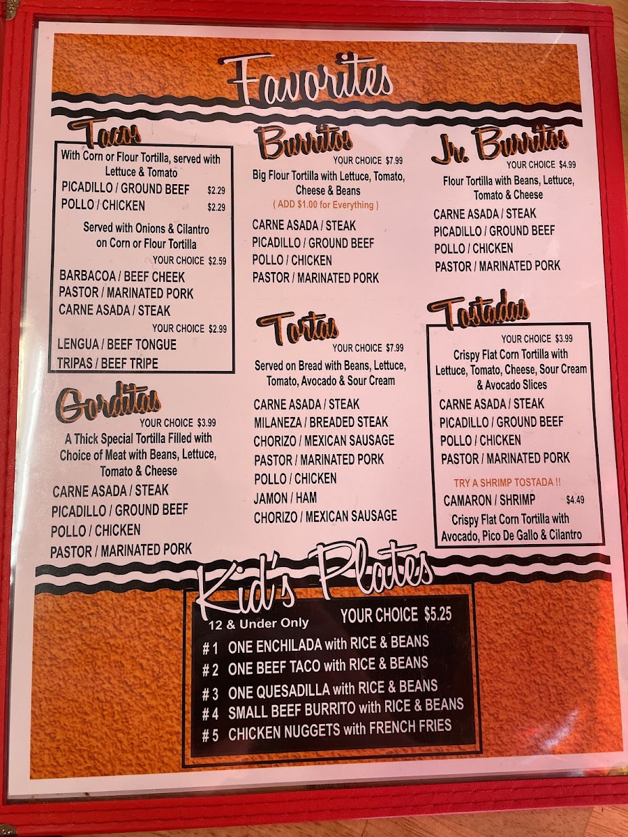 Taqueria Hernandez in Altus, Oklahoma, offers a vibrant menu that beautifully showcases authentic Mexican flavors at wallet-friendly prices. The star of the menu includes their delicious tortas such as Carne Asada, Chorizo, and Pastor, each priced at just $5.00. Burrito lovers can indulge in hearty options like Carne Asada, Pollo, and Picadillo, each for $5.50, while the Gorditas, a delightful street-food classic, feature the same savory fillings for $3.00.
